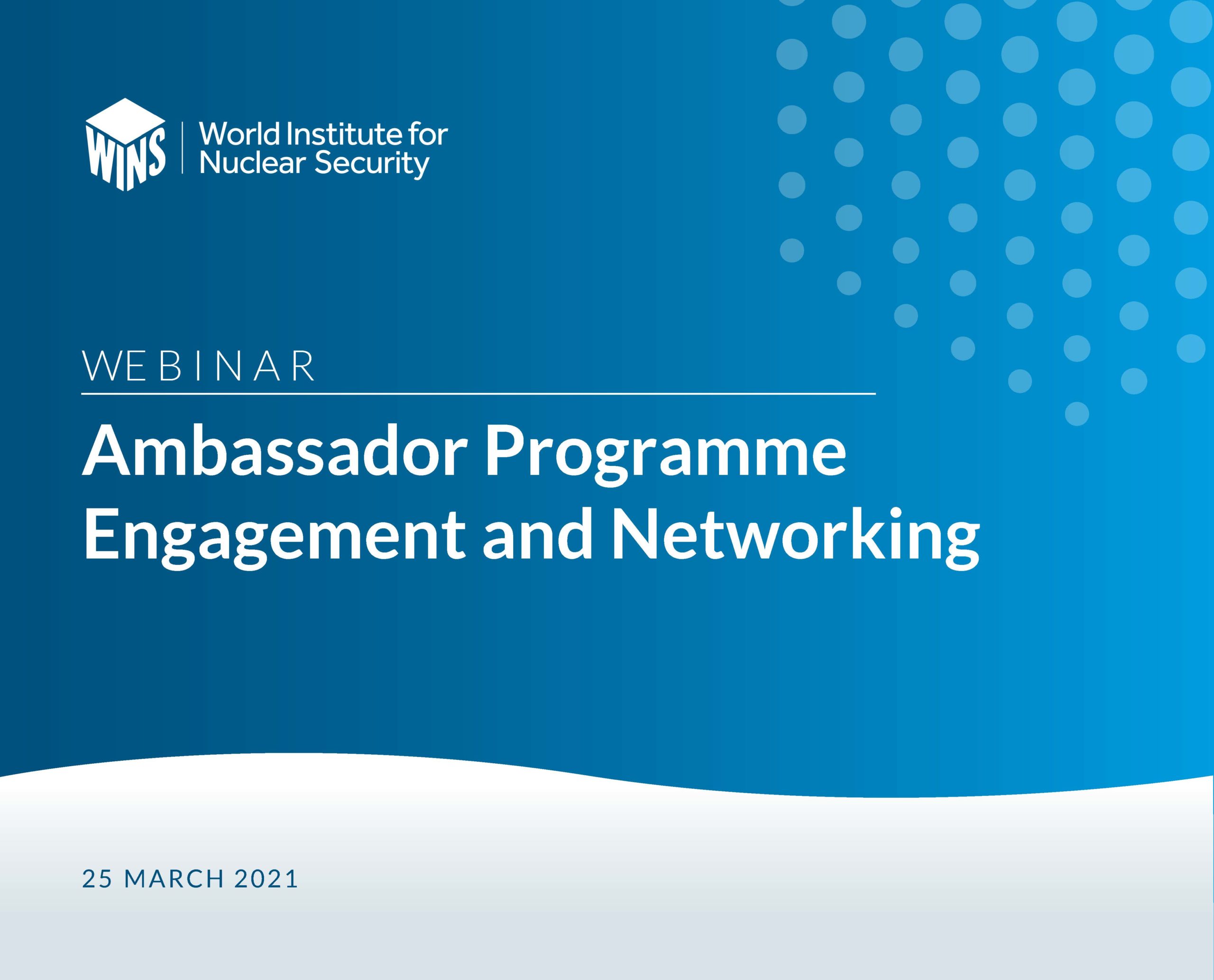 WINS held a webinar on Ambassador Programme Engagement and Networking on 25 March 2021. The purpose of the webinar was to give Ambassadors the opportunity to find out more about the new WINS Executive Director and raise the awareness and importance WINS gives to the WINS Gender Champions Programme. The webinar provided the opportunity for open discussion and collective approach to enhance nuclear security culture and minimize threats and risks.