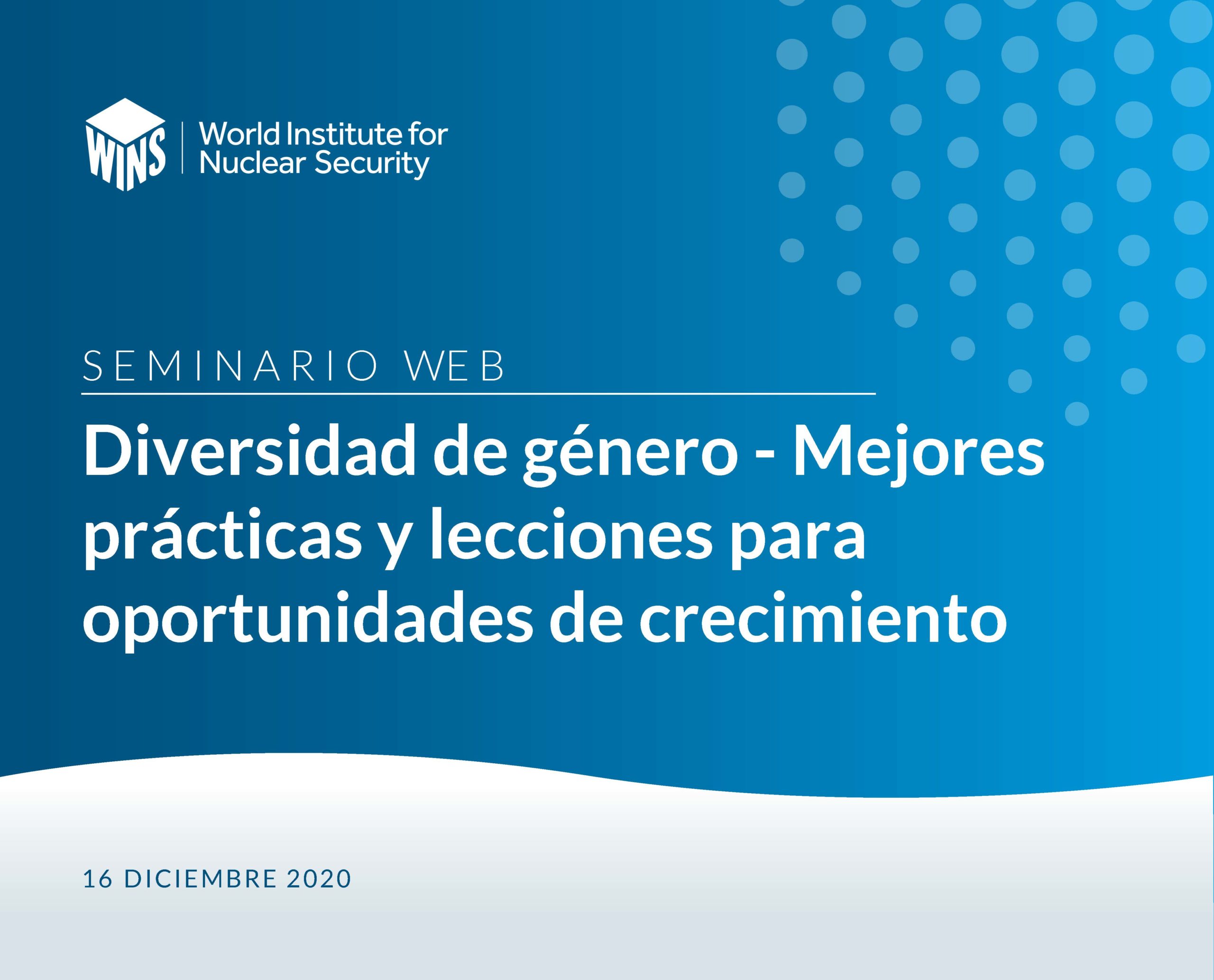 Sign In / Sign UpWINS celebró un seminario web sobre Diversidad de género - Mejores prácticas y lecciones aprendidas para oportunidades de crecimiento el día 16 de Diciembre de 2020. En la Parte 3 de la serie de seminarios web, las expertas en seguridad de fuentes radiactivas compartieron sus lecciones aprendidas y las mejores prácticas para el reclutamiento, el crecimiento profesional, la capacitación y la certificación al igual que en procesos y procedimientos.