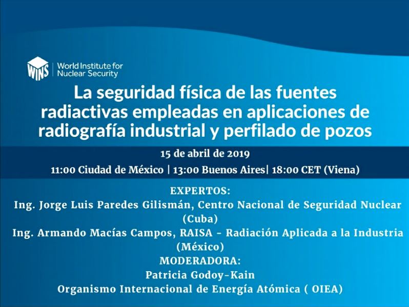 Sign In / Sign UpEl World Institute for Nuclear Security (WINS) organizó un webinario sobre la Seguridad física de las fuentes radiactivas empleadas en aplicaciones de radiografía industrial y perfilado de pozos.