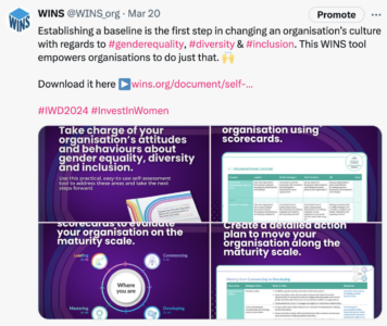 In honour of this year’s International Women’s Day (IWD), the WINS Gender Programme highlighted WINS’ work to invest in women – which aligned with the UN Women’s IWD theme – through an extensive social media campaign that ran for two weeks in March. The campaign was featured on all of WINS’ social media platforms, including X, Facebook, Instagram and LinkedIn.
